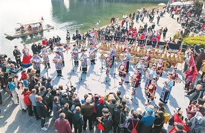 12月15日,在广西壮族自治区桂林市象鼻山景区,龙胜各族自治县以侗年节算作为载体,通过民族文艺展演与脾气居品展销相纠合的状貌,多维度展现该县独有的民族文化魔力与优质物产资源,劝诱庞杂国表里旅客前来旅游体验。图为在象鼻山景区,龙胜各族自治县的侗族全球在扮演侗族琵琶弹唱。庞革平文 韦吉阳摄